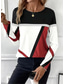 女性用 スタイリッシュ カラーブロック ストライプ プリント レギュラー トップス デイリー ブラック+ホワイト+グレー レッド オレンジ 春 秋 プレフォール