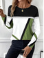 女性用 チュニック Tシャツ プリント レオパード カラーブロック レタード ヴィンテージ スタイリッシュ カジュアル 長袖 Vネック レギュラートップス 日常 スポーツ 週末 ブラック 秋