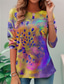 女性用Tシャツ クルーネック 長袖 チュニック フローラル グラフィック プラント ビンテージ スタイリッシュ クラシック ラウンドネック レギュラートップス デイリー プリント イエロー ピンク ブルー パープル グリーン 秋