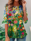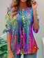 女性用Tシャツ 長袖 ヘンリーネック Tシャツ ブラウス フローラル ヴィンテージ ベーシック 3/4丈スリーブ ラウンドネック レギュラートップス カジュアル ウィークエンド ボタン プリント ブルー パープル グリーン プレフォール