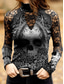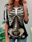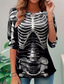 女性用Tシャツ スケルトン スカル グラフィック スケルトン ヴィンテージ ファッション スタイリッシュ 長袖 クルーネック ラウンドネック レギュラー トップス デイリーブイークエンドプリント ブラック ワイン ダークグレー サマー スプリング フォール