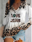 女性用 Tシャツ プリント グラフィック レオパード ヴィンテージ スタイリッシュ クラシック 長袖 Vネック レギュラートップス 日常 週末 バケーションウェア ホワイト 春 秋 春、夏、秋、冬 Witch