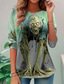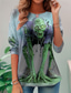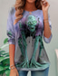 ウィメンズ Tシャツ 長袖 トップ 3Dプリント フローラル カジュアル レギュラー トップス デイリープリント シルバー ピンク スカイブルー カーキ 春 秋 プレフォール