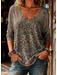 女性用 Tシャツ ヘンリーシャツ ボタン プリント フラワー ビンテージ エスニック 日常 ベーシック 七分袖 Vネック レギュラートップス 祝日 週末 ルビーレッド パープル グリーン カーキ色 グレー 秋冬