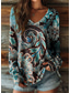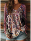 ウィメンズ ボヘミアン Tシャツ フローラル グラフィック プランツ ヴィンテージ スタイリッシュ カジュアル ロングスリーブ Vネック レギュラー トップス デイリー ウィークエンド プリント ブルー-ブラック レッド ブラウン サマー スプリング