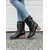 穴あきバックルストラップとステッチのディテールが施されたレディースウエスタンブーツ、カジュアルやアウトドアに最適なミドルカーフカウガールブーツ