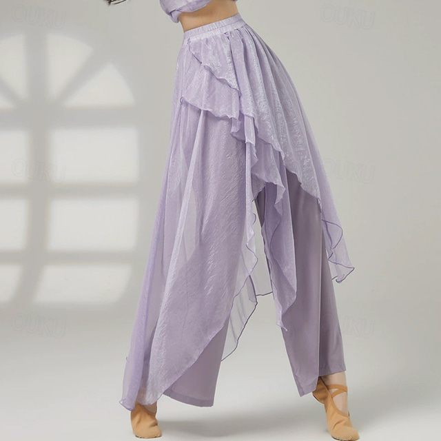 2026年 アクティブウェア パンツ ピュアカラー スプライシング チュール 女性用 性能 訓練 ハイウエスト ポリエステル  コレクション – US $42.99 –P4