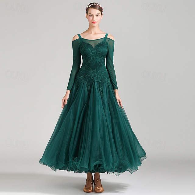 性別: 女性用, スタイル: エレガント, スタイリッシュ, 場合: 訓練, 性能, カテゴリー: ボールルームダンス, 生地: チュール, レース, 袖丈: 長袖, 装飾: ピュアカラー, ウエストラインの高さ: ナチュラルウエスト, ネックライン: オフショルダー, 年齢層: 成人, ビルトインブラ: なし, パッケージ内容: ドレス,