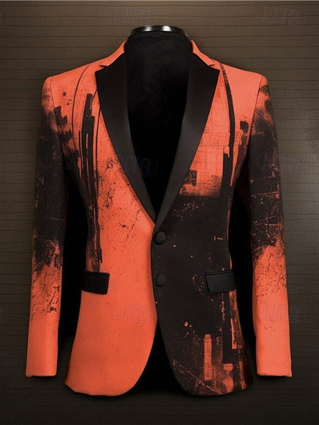 男性用 ジオメトリ 長袖 折襟 ビジネス 抽象画 ワーク 仕事に着る お出かけ ボタン プリント マルチポケット