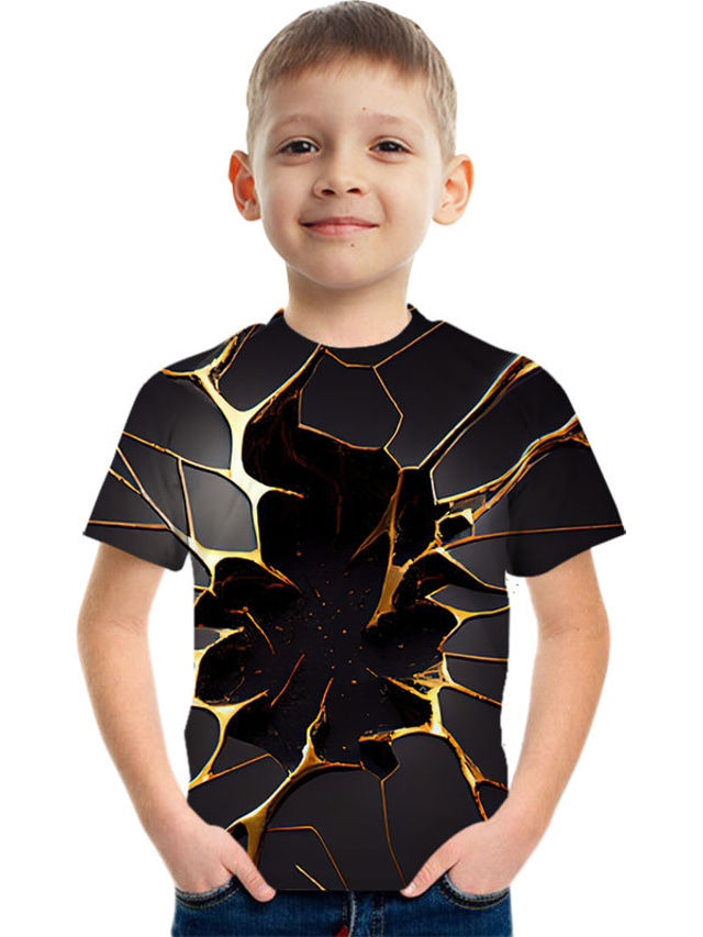 男の子 3D グラフィック カラーブロック 3D印刷 Tシャツ Tシャツ 半袖 3Dプリント 夏 スポーツ ストリートファッション ベーシック 子供 3〜12年