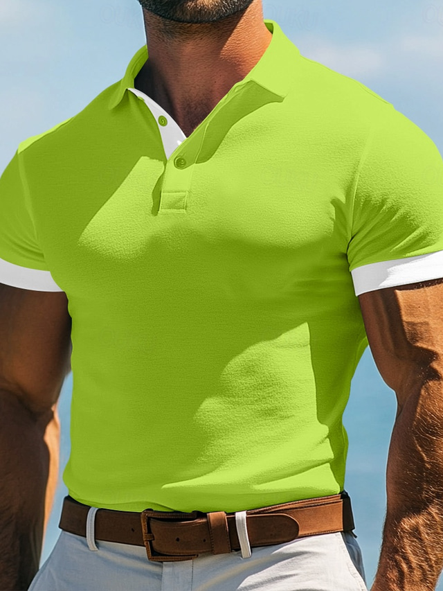 男性用 ゴルフシャツ バケーション ワーク ラペル リブ付きポロカラー 半袖 ベーシック 近代の カラーブロック パッチワーク ポケット 夏 春 春夏 スリムフィット ネイビーブルー ブルー グリーン グレー ゴルフシャツ