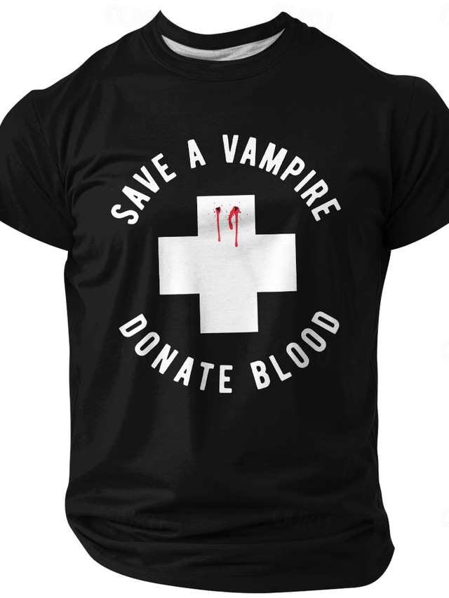 メンズ グラフィックTシャツ - 吸血鬼を救え、血を寄付しよう 面白いダジャレTシャツ