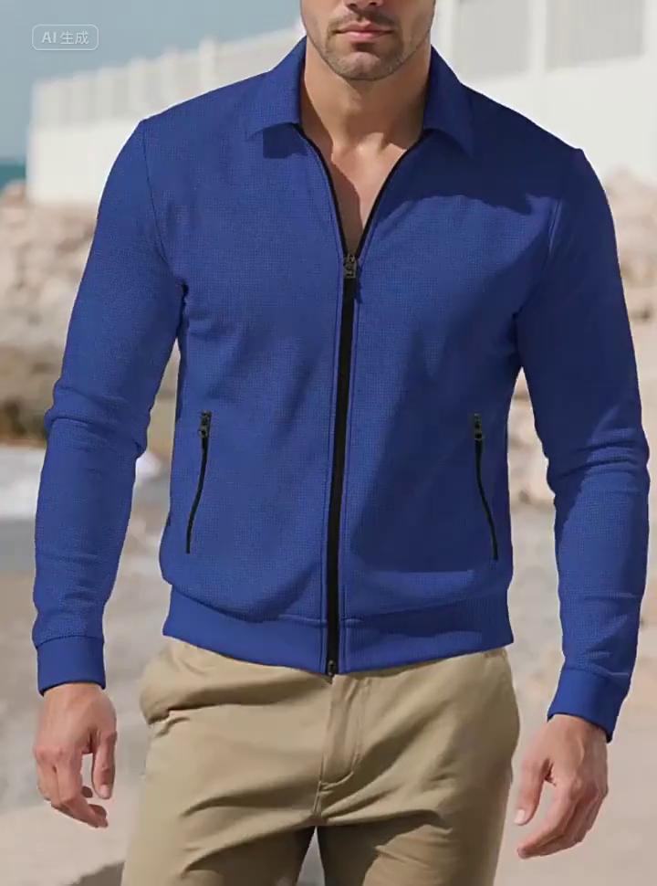 男性用 軽量ジャケット ワッフルジャケット カジュアルジャケット バケーション 日常 高通気性 ポケット 春 秋 平織り ファッション クラシック ラペル レギュラー ブラック ホワイト ロイヤルブルー カーキ色 グレー ジャケット