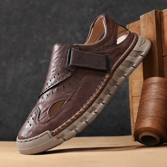 メンズサンダル ブラウン アウトドアサンダル ベルクロストラップ付き ハイキング、旅行、日常使いに最適な快適なデザイン