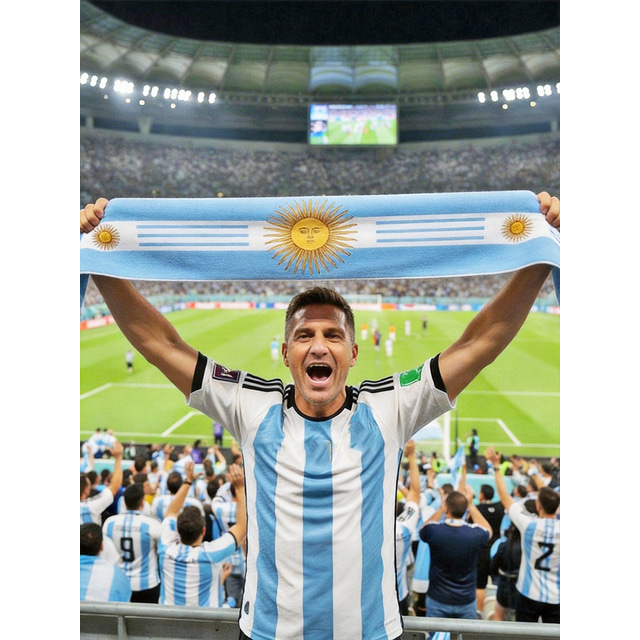 メンズ アルゼンチン国旗プリント ポリエステルタオルスカーフ、サッカーの試合観戦、スタジアムイベント、スポーツ観戦、普段使いに最適な柔らかいサッカーファン応援スカーフ