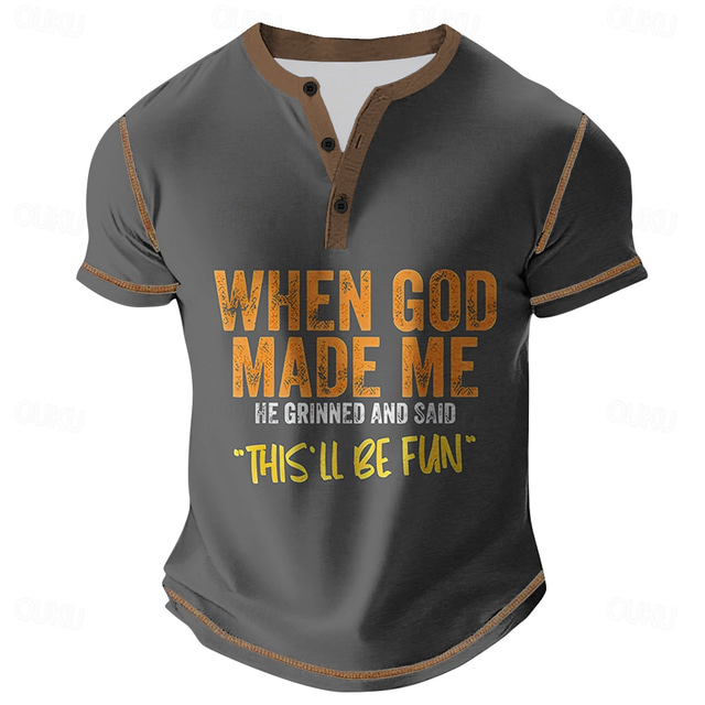 性別: 男性用, デザインの特長: グラフィック柄, スタイル: カジュアル, ネックライン: ヘンリー, 袖丈: 半袖, 厚さ: レギュラー, トップス丈: レギュラートップス, パターン: 文字, シーズン: , オールシーズン,