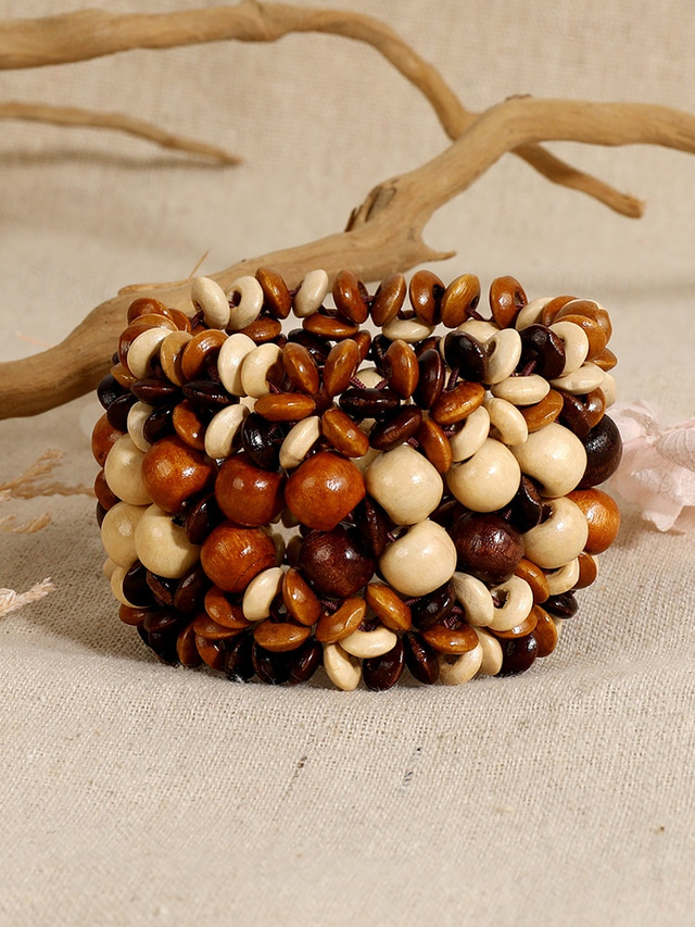 2026年 女性用手作り木製ビーズブレスレット - ボヘミアンチャンキーストレッチブレスレット、ナチュラルヴィンテージエスニックスタイルレディースジュエリー、カジュアル&ビーチアクセサリー  コレクション – US $8.99 –P1