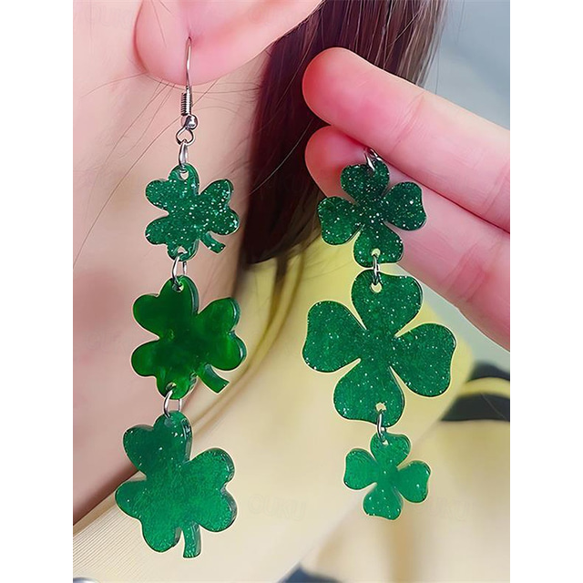 性別: 女性用, 材質: アクリル, スタイル: ファッション, セントパトリックデー, ジュエリータイプ: ドロップイヤリング, フープピアス, 形状: 四葉クローバー,