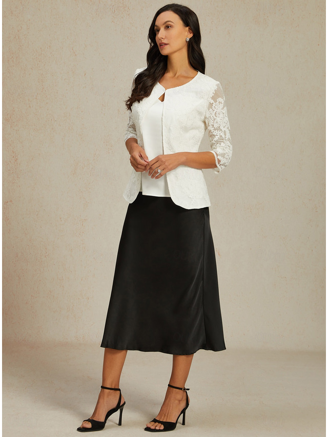 レディース レースジャケット ブレザー メッシュ エレガント 7分袖 クルーネック レギュラートップス 結婚式 ゲスト 仕事 デイリー レース ホワイト 春 秋