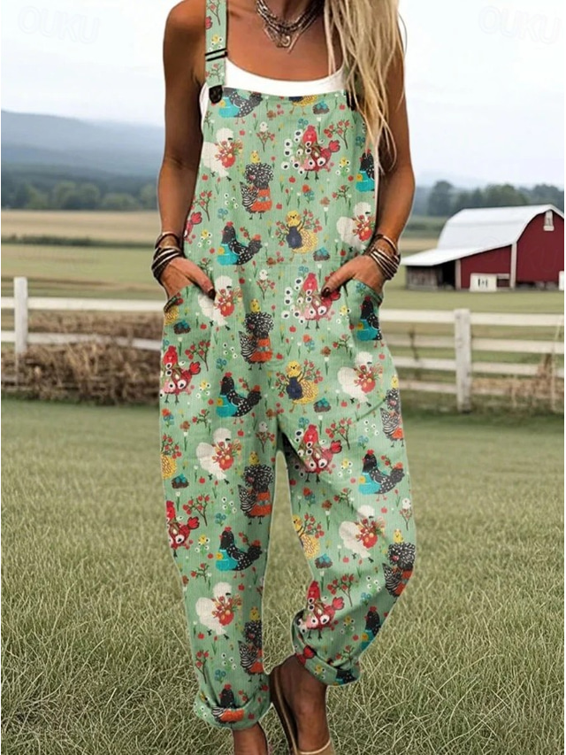 女性用 ロンパース 活発的 グラフィック ノースリーブ ボタン 日常 バケーション ルーズフィット ブルー ホワイト ピンク 夏
