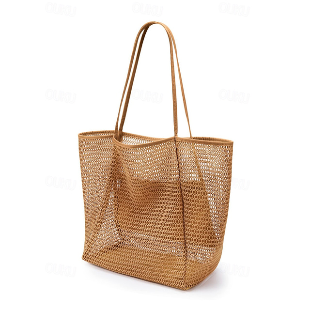 2026年 女性用 トートバッグ ショルダーバッグ メッシュ ビーチ ショッピング カジュアル/普段着 大容量 純色 ブラック 褐色 ベージュ  コレクション – US $16.99 –P10