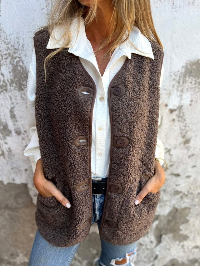 女性用 ベスト アウトドア ストリート 日常 秋 冬 レギュラー コート レギュラー 保温 高通気性 コンテンポラリー スタイリッシュ ジャケット ノースリーブ 純色 ポケット付き ブラック ルビーレッド コーヒー