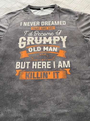 I bought this for my husband, known in the family as Grumpy. The size is good. The material has a plastic feel / I guess that’s what polyester is, but it’s all about the message on the front. I bought this for my husband, known in the family as Grumpy. The size is good. The material has a plastic feel / I guess that’s what polyester is, but it’s all about the message on the front.