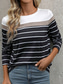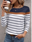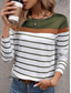 Women's T shirt Crew Neck Long Sleeve Tunic Graphic Striped Stylish Classic Casual Regular Tops Daily Weekend Print Black Navy Blue Green Gray Fall