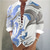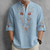 Men's Floral Print Ethnic Flowers Shirt Button Up Shirt Henley Shirt Long Sleeve Vintage Retro Casual Vacation Wedding Summer Spring Mandarin Collar Standing Collar 3D Print Linen Like Shirt Blue