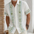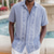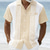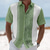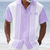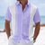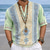 Men's Geometric Striped Ethnic Shirt Guayabera Shirt Button Up Shirt Short Sleeve Vintage Retro Daily Outdoor Vacation Summer Spring Turndown 3D Print Linen Like Shirt Blue Pink Purple Green Khaki