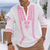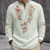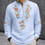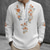 Men's Ethnic Intricate Floral Shirt Button Up Shirt Henley Shirt Long Sleeve Vintage Retro Casual Vacation Wedding Summer Spring Mandarin Collar Standing Collar 3D Print Linen Like Shirt White Pink