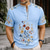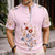 Men's Floral Print Ethnic Flowers Shirt Button Down Shirt Short Sleeve Vintage Retro Wedding Holiday Casual Daily Summer Spring Standing Collar Henley Collar 3D Print Linen Like Shirt Blue White Pink