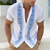 Men's Floral Print Ethnic Flowers Shirt Guayabera Shirt Button Up Shirt Short Sleeve Vintage Retro Vacation Casual Daily Summer Spring Turndown 3D Print Front Two Pockets Linen Like Shirt Blue White