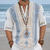 Men's Geometric Pattern Floral Print Ethnic Shirt Button Up Shirt Henley Shirt Long Sleeve Vintage Retro Casual Vacation Wedding Summer Spring Mandarin Collar Standing Collar 3D Print Linen Like Shirt