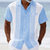Men's Geometric Striped Shirt Casual Shirt Button Up Shirt Short Sleeve Fashion Casual Outdoor Vacation Holiday Summer Spring Turndown 3D Print Collared Shirts Light Blue Pink Khaki Dark Blue