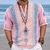 Men's Ethnic Shirt Button Up Shirt Long Sleeve Fashion Streetwear Designer Outdoor Street Daily Summer Spring Fall Stand Collar Print White Pink Blue Green Gray
