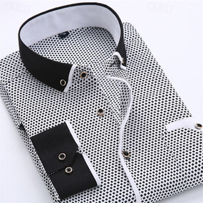 Men's Dress Shirt Button Down Shirt Collared Shirt Polka Dot Wedding Outdoor Black White Red Navy Blue Long Sleeve Turndown Summer Spring Clothing Apparel Print