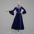 Blauwe ombre ballroom dansjurk voor dames met uitlopende mouwen, ceintuur en V-hals – perfect voor latin, tango en performances