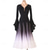 Zwart-witte ombre ballroom dansjurk voor dames met vloeiende mouwen en diepe V-hals – ideaal voor latin, tango en performance-kleding