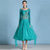 Groene ballroom dansjurk voor dames - lange mouwen A-lijn jurk voor wedstrijden, Latijns-Amerikaanse dans en dansevenementen - vloeiende rok