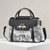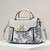 elegante handtas met zwaanhanger voor dames - zwart-wit paisley-ontwerp met gouden accenten en verstelbare riem