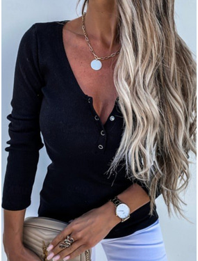 T-shirt Dames Wit blauw Groen Effen Sexy Straat Dagelijks Modieus V-hals Normale pasvorm S