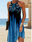 Dames Maxi-jurk Zonnejurk A lijn jurk Zomerjurk Vakantie Casual Boho Feestdagen Ruim Passend Ombre Bloemig Grafisch Mouwloos V-hals Gekerfde nek aquablauw Grijs-Groen Lila Zomer Lente