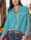 Dames Overhemd Blouse blauw Paars Effen nappi Zak Lange mouw Dagelijks Weekend Streetwear Casual Overhemdkraag Normaal Fluweel S