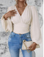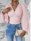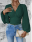 Dames Blouse Met ruches Effen Kleur Stijlvol Modern Lange mouw Bel V-hals Dagelijks Werk Zwart Wit Blozend Roze Groen Lente Herfst Winter