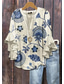 Dames Retro Blouse Laagjes Rimpel Mouwen Vintage Bloemenprint Bohemia Vintage Dagelijks 3/4 Mouw Regular Tops Dagelijks Vakantie Kleding Print Wit Blauw Bruin Zomer Lente