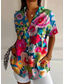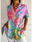 Dames Overhemd Button-down overhemd Normaal shirt Zomer tops Knop Afdrukken Bloemig Grafisch Vintage Stijlvol Modern Korte mouw Overhemdkraag Lange tops Dagelijks Lichtgroen Licht Paars Regenboog