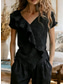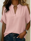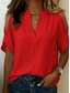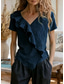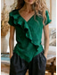 Dames Zomer overhemd Normaal shirt Blouse Ruche Effen Kleur Vintage Stijlvol Korte mouw V-hals Normale tops Dagelijks Feestdagen Uitgaan blauw Zwart Rood Licht Bruin Groen Zomer Lente