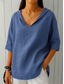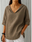 Vrouwen Shirt Knopen Blouse Basisprint 3/4 Lengte Mouw Reguliere Tops V-Hals Casual Roze Blauw Paars Groen Khaki
