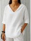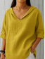 Dames Zomer overhemd Normaal shirt Blouse Effen Kleur Tropisch Dagelijks Casual V-hals Dagelijks Strand Feestdagen blauw Wit Geel Oranje Bruin Zomer Lente